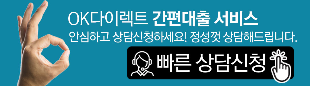 - ① “OK다이렉트대부중개 ”는 고객문의, 고객불만접수 등 다양한 인터넷 서비스를 제공하기 위하여 적법하고 공정한 수단에 의하여 회원님의 개인정보를 수집하고 있습니다.